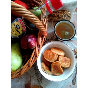 Накрываем крышкой и дожариваем до готовности. Снимаем на бумажное полотенце, чтобы ушло лишнее масло. Из этого количества кляра у меня вышла одна сковорода (11 шт), сковорода D- 24 см. |