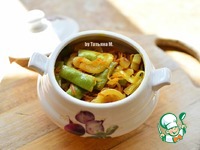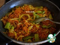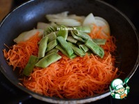 Выложить в разогретую сковороду на масло - морковь, лук - полукольцами и фасоль; |