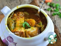 Описание: Очень ароматный, потрясающе вкусный густой суп с гренками! У меня на не жирном курином бульоне, но можно использовать как рыбный, так и грибной бульон! А так же приготовить на воде, будет не менее вкусно!