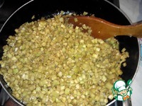 Баклажаны отжать от жидкости и обжарить до полуготовности на растительном масле. |