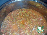 Приготовить приправу: Помолоть на мясорубку перец сладкий красный 15 шт (я брала 10 шт. красного и 5 шт. сладкого желтого), чеснок, горький перец. |