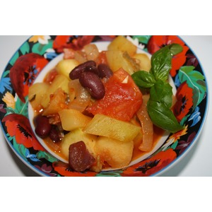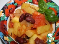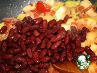 Последней идет фасоль. Все хорошо перемешать, досолить если надо и тушить на медленном огне около 20 минут. |
