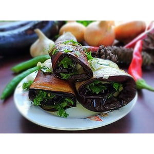 Описание: Потрясающе ароматная и острая закуска из баклажанов. Хороша к мясу и шашлыку, да и как самостоятельное блюдо смотрится великолепно на столе.