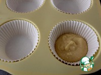 Смазать формы для кексов растительным маслом. Я этого не делала, а просто взяла бумажные формы для кексов. Налить примерно столовую ложку теста в формы |