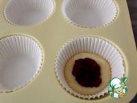 Дальше добавить чайную ложку варенья в тесто, которое уже в формах |