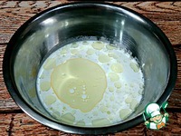 Дрожжи распустить в теплой воде. Добавить сахар, соль, сливки и растительное масло. Перемешать. |