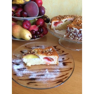 Описание: Давно я хотела выставить этот рецепт, но никак руки до него не доходили. А сегодня была просто обязана - потому что обещала давно нашей прекрасной Ирушеньке, которая празднует свой День Рождения! Пирог очень простой и безмерно вкусный - влажный бисквит с томящимися в нём фруктами. Ириночка, дорогая, этот пирог для тебя!