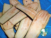 Баклажаны нарезать тонкими пластами, сложить в дуршлаг, подсолить, перемешать, поставить на некоторое время на тарелку или миску, чтобы стекала жидкость. |