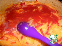 Добавить к овощам муку, перемешать, чтобы мука без комков соединилась с овощами. |