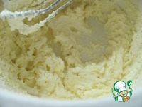 Масло взбить с сахаром до пышности. Масса должна напоминать крем. |