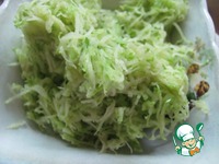 Кабачок натереть на мелкой терке. Выложить в полотенце и хорошо отжать. Нам понадобиться 100 грамм отжатого кабачка. |