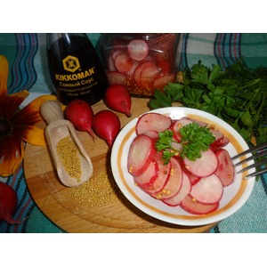Описание: Весной в магазинах и на рынках появляются аппетитные пучки молодого редиса. Я, конечно же, не могу пройти мимо и с радостью приобретаю сразу несколько пучков... Но когда организм уже насытится витаминами, хочется чего-нибудь необычного. Вот тогда я и готовлю этот рецепт. Маринованный редис получается очень ароматным, в меру острым и особенно вкусным. Тонкие ломтики овощей окрашиваются в нежно-розовый цвет, делая эту закуску еще аппетитнее.