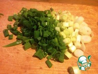 Зелёный лук вымыть, обсушить, мелко нарезать. Отложить немного для подачи. |