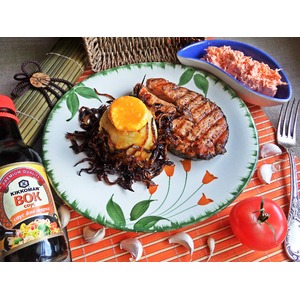 Сковороду-гриль раскалить, смазать кисточкой с маслом и обжарить стейк с двух сторон по паре минут. |