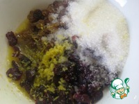 Для начинки: Сливочное масло растопить. В еще теплое масло добавить специи, промытый и обсушенный изюм, клюкву, цедру и сок лимона, сахар. Хорошо перемешать и оставить настояться. |