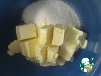 Для теста: Мягкое сливочное масло взбить с сахаром и ванильным сахаром до пышной, светлой массы. |
