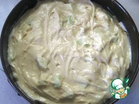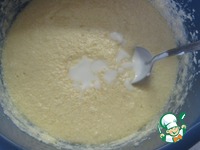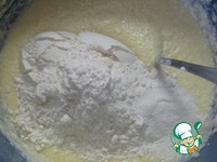 Добавить муку, смешанную с разрыхлителем теста и солью, тщательно перемешать (тесто по консистенции как густая сметана). |