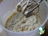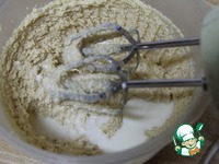 Смешать сухие компоненты и вводить в массу, чередуя с молоком (начиная и заканчивая сухими) |