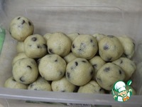 Скатать маленькие шарики (размером с небольшой орех), выложить на лист. Накрыть пленкой и поставить в холодильник на сутки. |