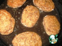 Обжарить котлеты на растительном масле с каждой стороны по 4 минутки на сильном огне, затем огонь уменьшить и готовить котлеты еще минут 10-15 под крышкой до готовности. |