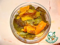 Остывшие перцы очистить от кожуры и семечек. Разделить на ломтики. |