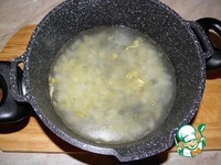 К готовому луку добавим примерно 200-250 мл воды и соль. |
