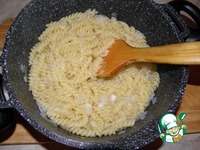 Выкладываем сыр к макаронам маленькими порциями, постоянно мешая |