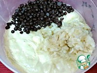 Добавить грушу, натертую на крупной терке и шоколадные капли. Если у Вас нет шоколадных капель, просто порубите ножом любой шоколад. Перемешать. |