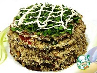 Описание: Год назад нашла такой рецепт, отложила его в сторону и ходила вокруг да около возле него))) Не решалась на его приготовление, хотя на самом деле все оказалось намного проще. Я осталась в полном восторге от такого закусочного тортика. Потрясающий вкус, насыщенный, свежий и слегка пикантный. В общем, делюсь с Вами рецептом и рекомендую его приготовить, ведь набор продуктов весьма простой и доступный. На праздничном столе будет эффектно смотреться.