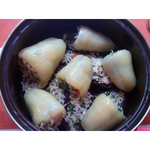 Фаршируем перчики и выкладываем сверху. Кто не хочет долго ждать и скорее попробовать наши овощи, можете взбрызнуть сверху уксусом, дабы скорее пошел процесс закваски! |