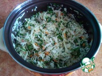 Делаем начинку. мелко шинкуем капусту. На крупной терке трем морковку. На мелкой трем чеснок, измельчаем петрушку. |