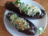 В баклажанах делаем кармашек и плотненько фаршируем их начинкой вот таким образом |