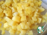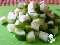 Огурец нарезаем кубиками. |