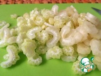 Сельдерей также нарезаем тонкими ломтиками. |