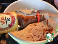 Влить 1 ст. л. соевого соуса для жарки ВОК от ТМ Киккоман. Перемешать, прожарить минутку и убрать с огня. Поперчить. |