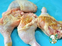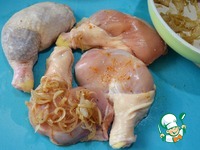 Описание: Небанальная подача хорошо знакомых куриных окорочков. Начиним "кудрявым" луком, запечем в томатном соусе. Вот и готово блюдо, можно и гостей созывать. Угощайтесь.