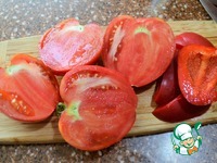 Приготовить соус. Помидоры и перец вымыть, вычистить от семян перец, помидоры очистить от кожицы. Нарезать. Выложить в емкость от блендера. |