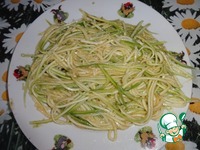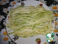Кабачок помыть, обсушить и натереть соломкой на специальной тёрке. |