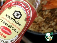 Уже мягкий лук полить соевым соусом - очень тут сладкий хорош от "Киккоман" - и немного потомить еще. |