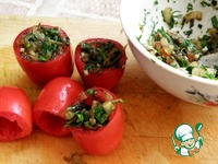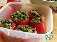 Нафаршировать помидоры теплой начинкой и дать постоять на столе, пока не остынет. |