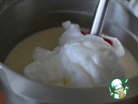 Взбить желтки, сахар, муку с солью и молоко. Отдельно взбить белки до крепких пиков. Добавить к желточной массе и аккуратно перемешать. |