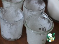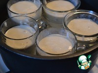 На салфетку выкладываем стаканы. А теперь действуем, как при стерилизации банок. Нальем теплой воды до 2/3 высоты стаканов. Аккуратно, чтобы вода не попала на тесто. |