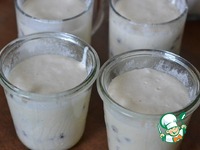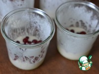 Начинаем заполнять наши стаканы. Выкладываем один половник ( неполный) теста. Сверху выкладываем горсть красной смородины |
