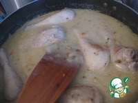 Выливаем в содержимое сковороды и тушим до готовности курицы |