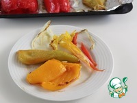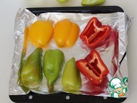 Перцы разрезать вдоль пополам, выложить срезом вниз на противень, запечь в хорошо разогретой духовке при 200* 15 минут. Противень можно застелить фольгой или кулинарной бумагой. |