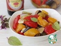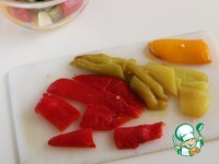 С испеченного перца снять кожицу. Чтобы кожица хорошо снималась, перец можно выложить в контейнер, закрыть крышкой, дать постоять и затем удалить шкурку. |