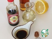 Приготовить заправку, в чашке смешать соевый соус Kikkoman, лимонный сок, уксус, растительное масло. |