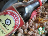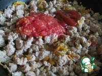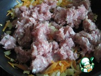 Добавить фарш. Хорошо перемешать, как бы разбивая его. Прожарить. |