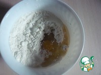 Масло растапливаем на водяной бане. В муку добавляем яйцо, соль и растопленное масло. Замешиваем тесто, накрываем пленкой и оставляем на 30мин. |