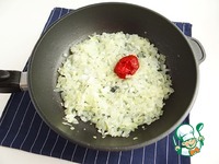 В сковороду наливаю растительное масло, добавляю нарезанный репчатый лук. На небольшом огне довожу лук до мягкости. |